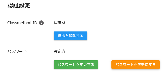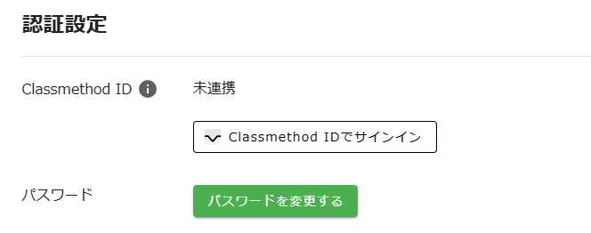 Section titled “パスワードを無効化する”Classmethod IDを連携したopswitchアカウントでは、Classmethod IDを使用してopswitchにログインできるため、opswitchのパスワードが不要になることがあります。